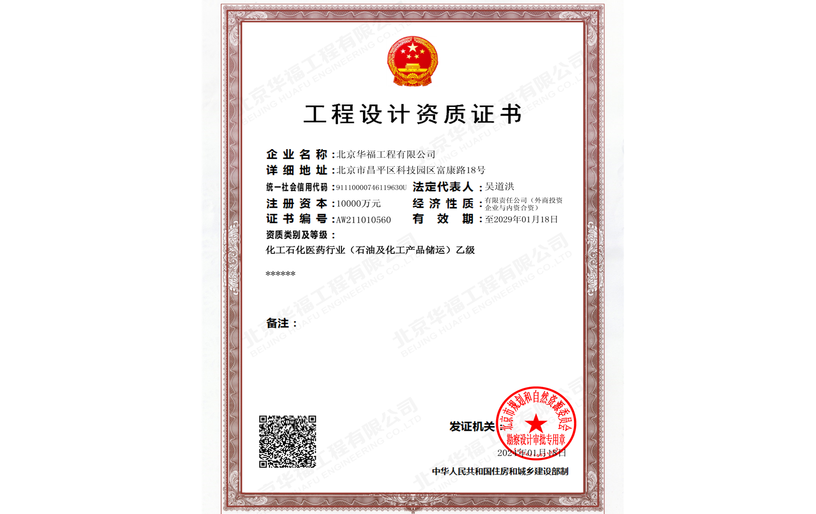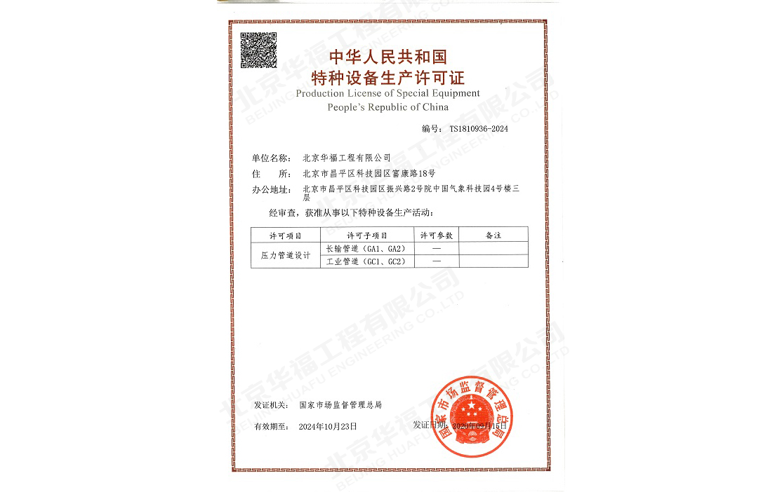 壓力管道設(shè)計(jì)資質(zhì)證書